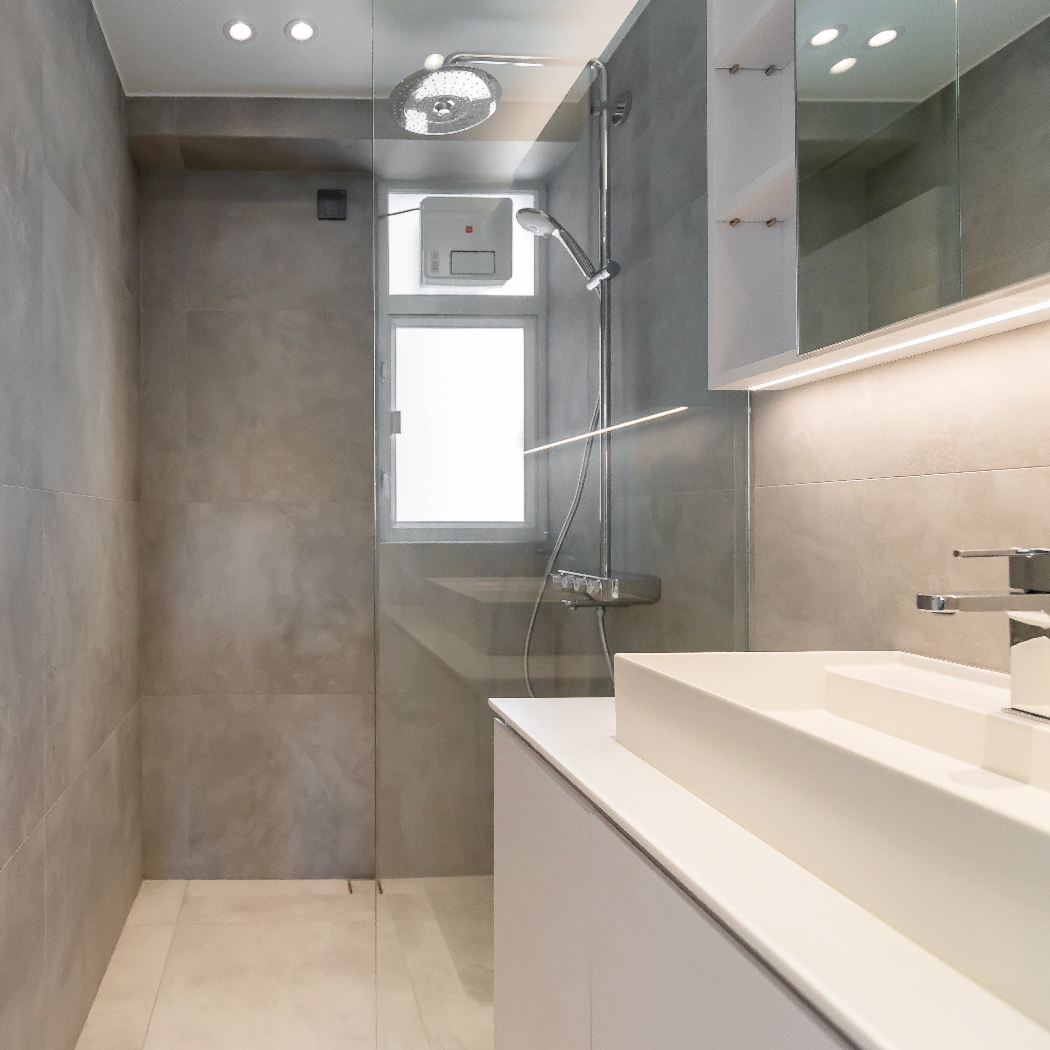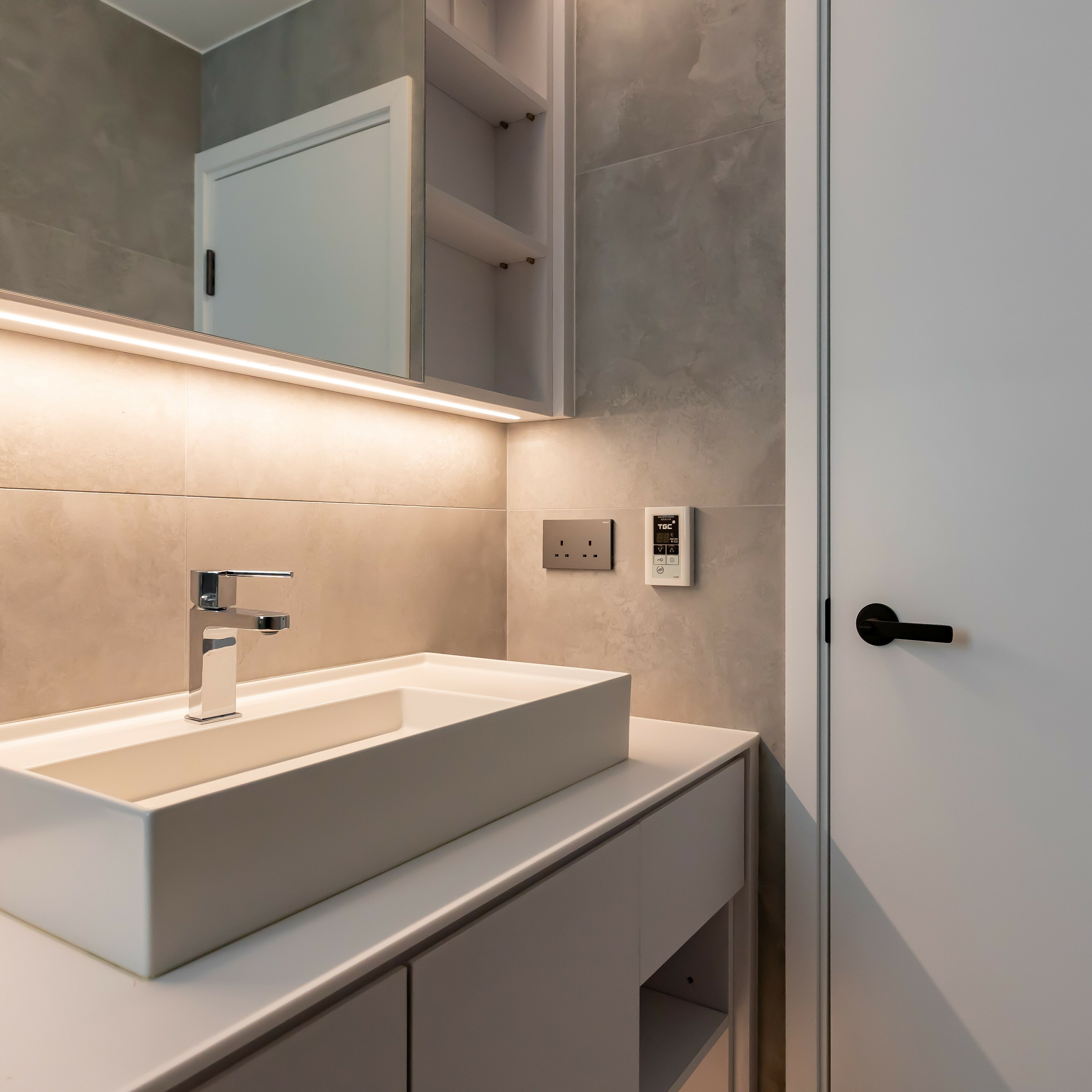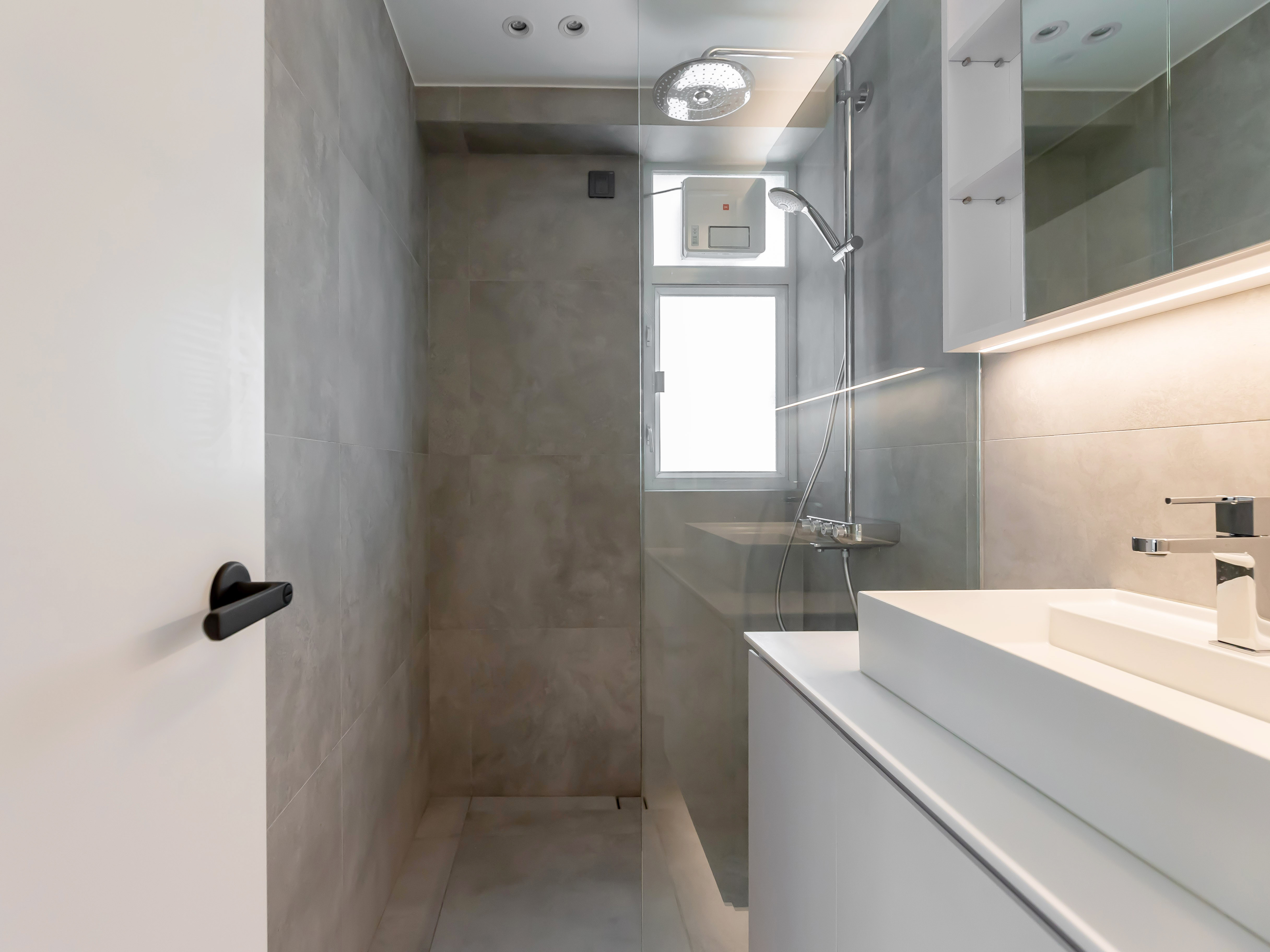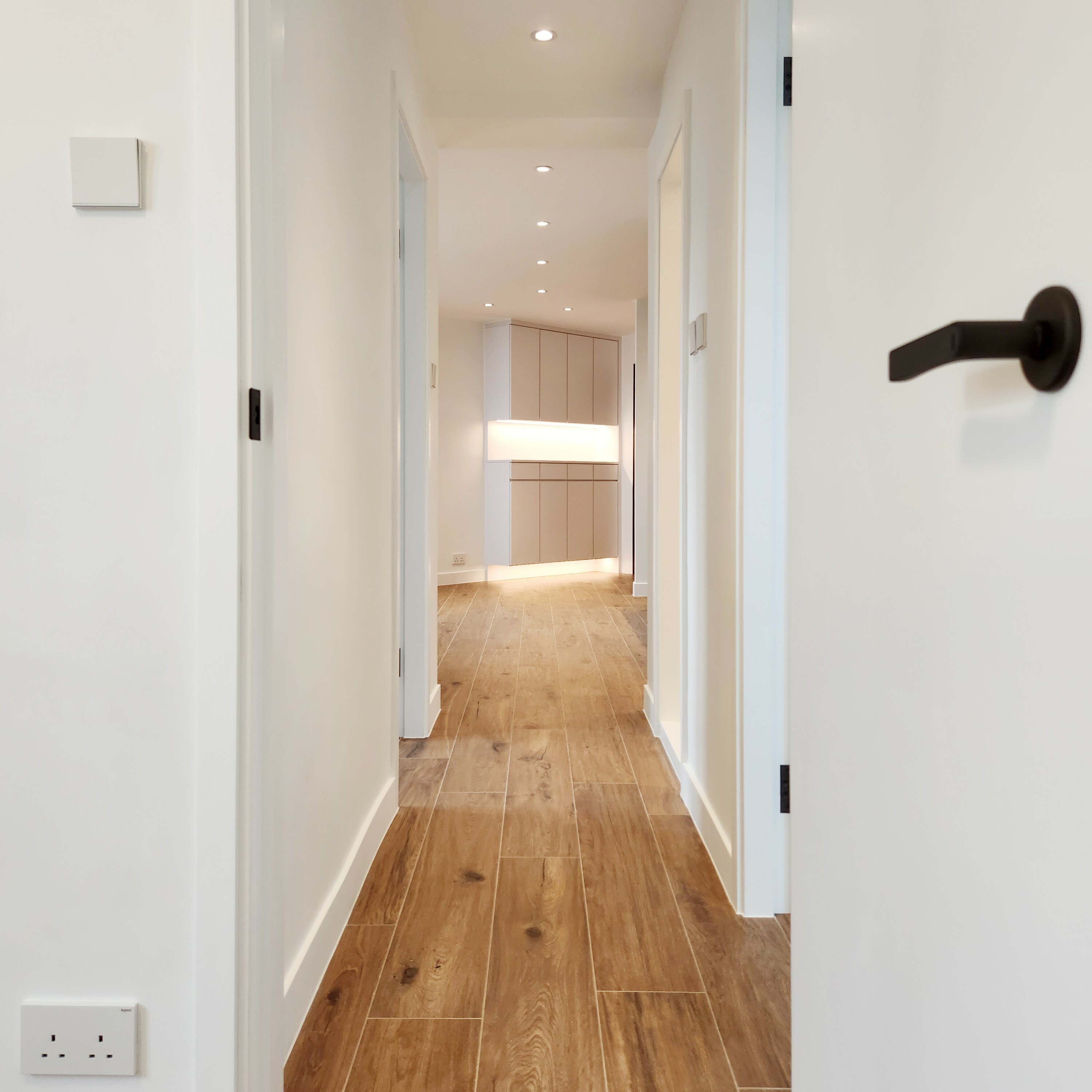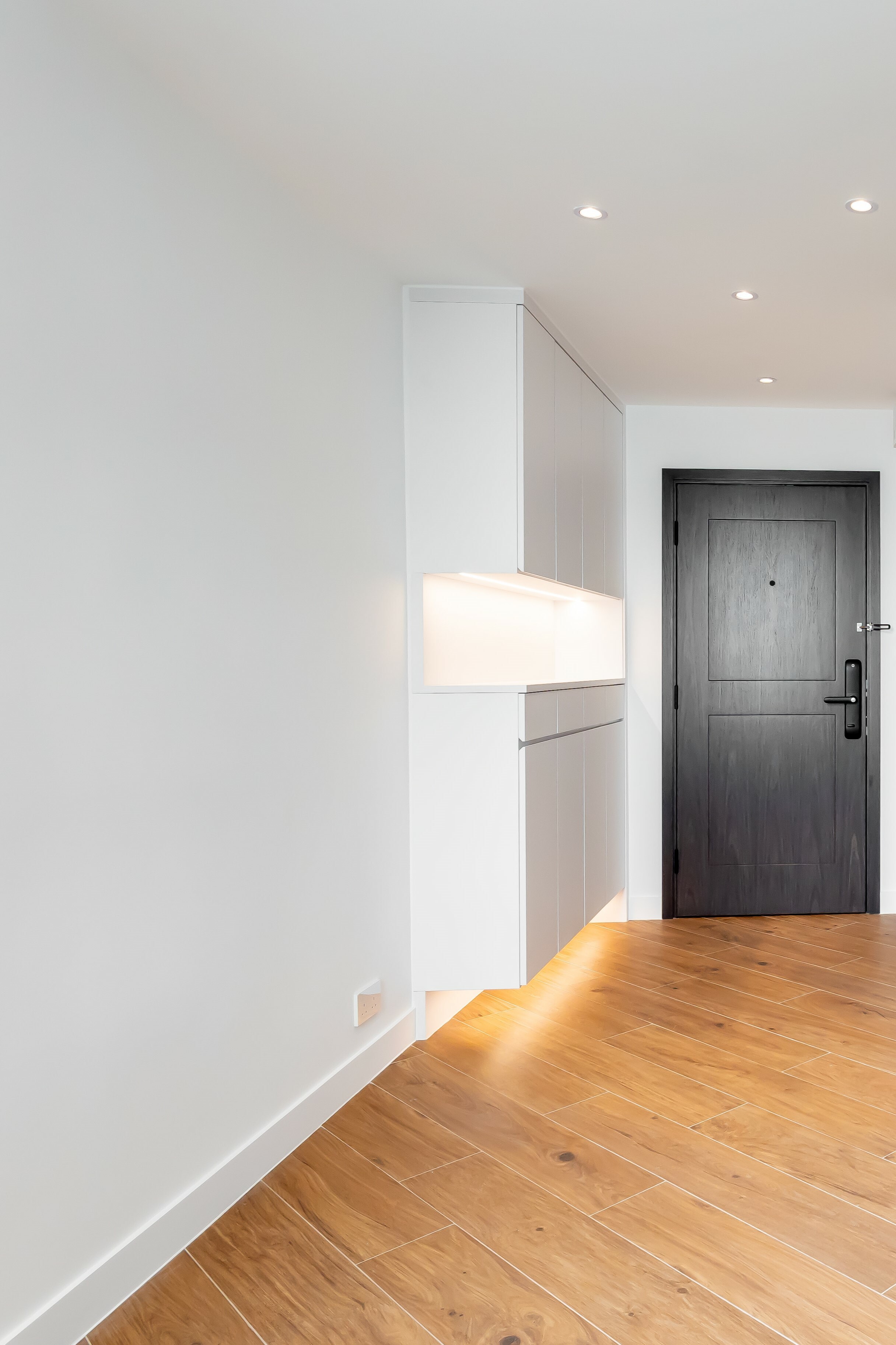 這是我們交付的硬裝成果,基本上就是全屋新造,包括雙層玻璃鋁窗,浴室廁所分房,全廳石膏板天花,多點射燈設計等。至於家居佈置就交給客人了。