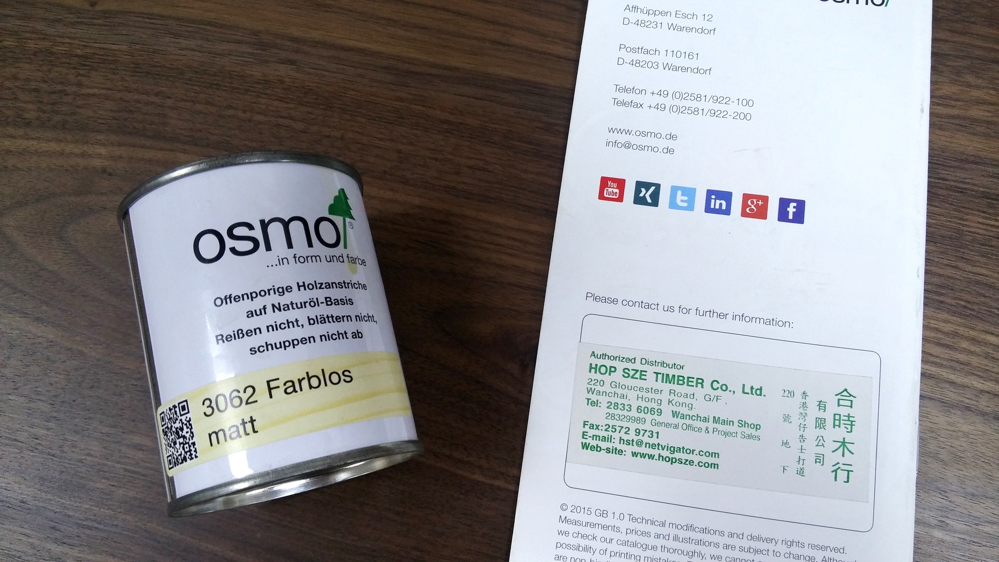 小店推薦德國 OSMO 的木蠟油, 品質好, 無毒, 並通過歐洲測試. 我們最常用的型號是 3062, 其他如 1101 亦可以, 只要係透明和啞色就得 (如唔鍾意啞色, 買光亮的都可以). 代理在告士打道 220 號, 電話 2833 6069. 買最細最細既家用裝就夠了, $120 左右, 依個容量經常冇貨, 最好打電話問左先去.